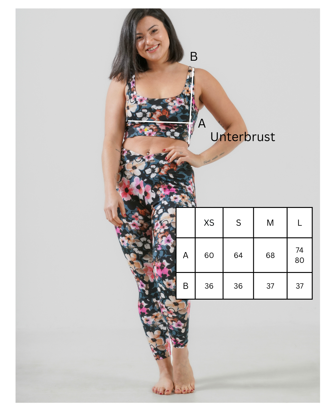 Du kannst zwischen einer ruhigen Uni-Seite und einem liebevoll gestalteten Blumenmuster wählen. Zusätzlich lässt sich der Bra sowohl mit tiefem V-Ausschnitt als auch mit elegantem Rückenausschnitt tragen. So entstehen mehrere Looks aus einem einzigen Teil – flexibel, feminin und nachhaltig.